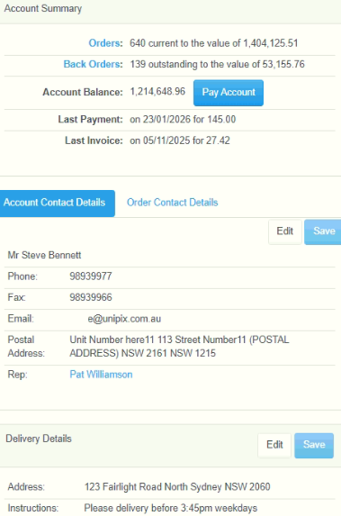 e-Commerce Account Details – the menu option has been renamed to ‘Account Summary’, credit terms have been added (subject to user access) and the information display has been reformatted.